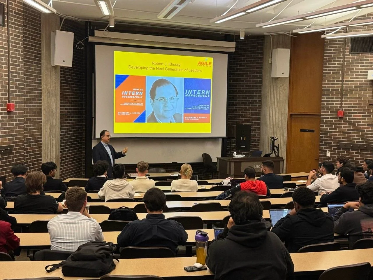 On October 15, 2025, Robert J. Khoury spent a wonderful evening speaking to the student finance club, Portfolio Management Team, at the University of Illinois Chicago, providing guidance on internship preparation. Students asked questions on “What should be in a cover letter?”, "What finance book do you recommend?" and "Who was your best intern and what made them so good?", to name a few.